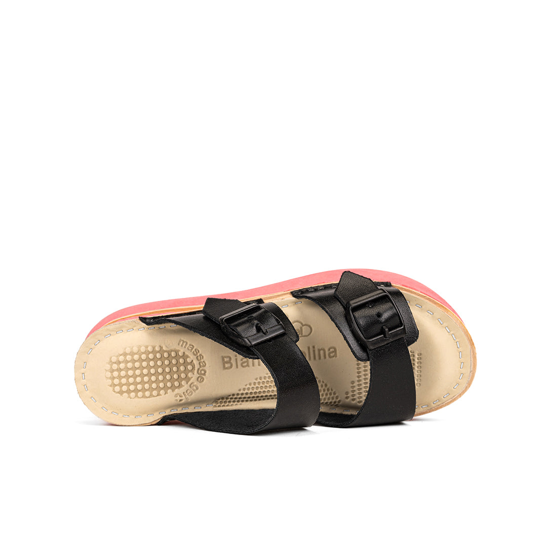 Black-Red Leather Clogs - Open Toe - Natural Comfort & Everyday Support